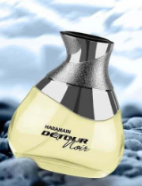 Al Haramain Detour Noir EDP Spray for Unisex is an amber-spicy fragrance that offers a captivating blend of fruity, floral, and woody notes. It opens with top notes of apple, lavender, jasmine, and violet. The heart reveals vanilla, bergamot, patchouli, and mandarin orange. The base notes include sandalwood, cardamom, guaiac wood, pepper, and geranium. This scent is designed to be long-lasting and is suitable for both men and women.
