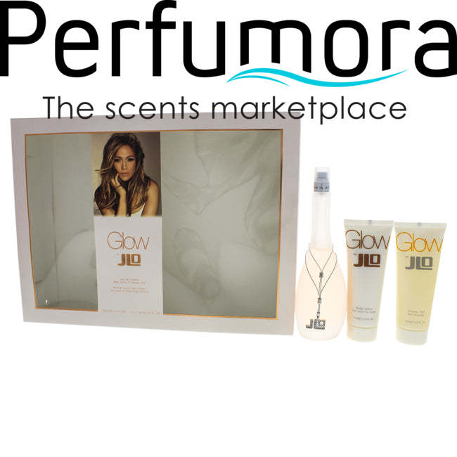 Introduced by Jennifer Lopez in 2002, Glow has a blend orange flower, grapefruit, rose, sandalwood, soft amber, jasmine, vanilla and musk. Glow by Jennifer Lopez for Women - 3 Pc Gift Set 3.3oz EDT Spray, 2.5oz Body Lotion, 2.5oz Shower Gel